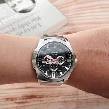 Đồng hồ kim: 3 kim (giờ, phút, giây),3 mặt số (ngày, thứ, 24 giờ) - Độ chính xác: ±15 giây một tháng